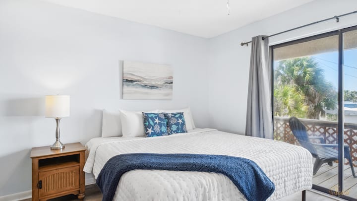 La suite principal cuenta con una lujosa cama tamaño king, que ofrece un montón de espacio para guardar en el vestidor y el armario. Relájate frente al televisor inteligente de pantalla plana y disfruta de la comodidad de un baño principal con baño privado con una ducha refrescante. Es el refugio perfecto después de un largo día en la playa.