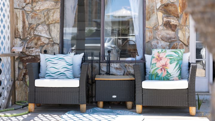 Deléitate con la tranquilidad de tu café de la mañana en el patio trasero, sentado en una encantadora mesa de cuatro asientos. Después de haber saboreado cada sorbo, da un tranquilo paseo hasta el acceso a la playa pública cercana y eres testigo del fascinante choque de las olas en la orilla.
