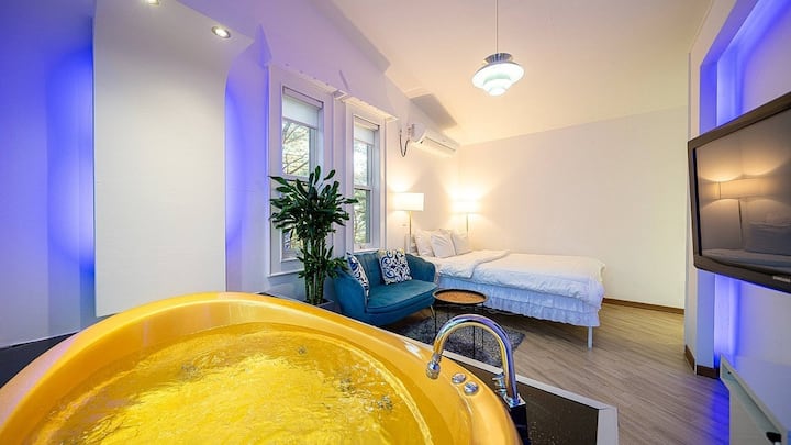 Prohibimos cocinar cerdo, pescado y cheonggukjang en la habitación para tener en cuenta a otros huéspedes debido al fuego y el olor, así que utiliza el lugar designado al aire libre y el área de barbacoa.