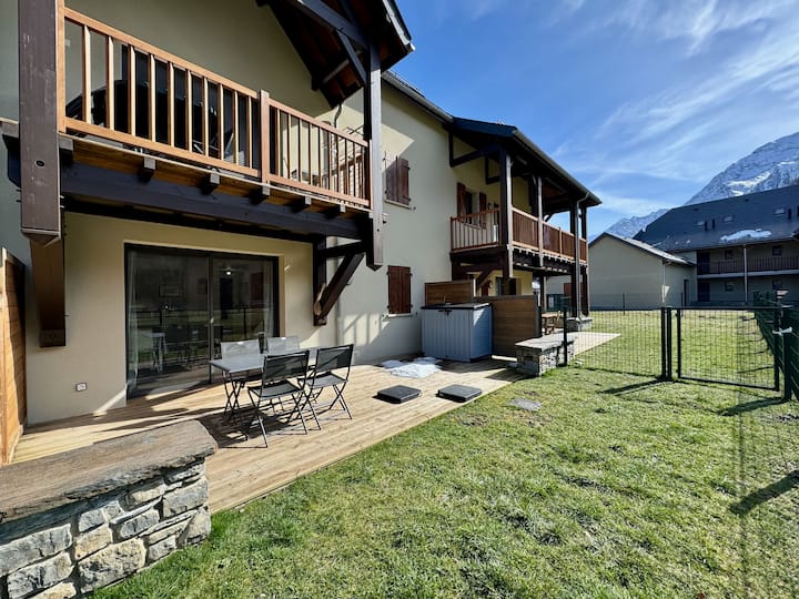 Con vista a la montaña y al jardín