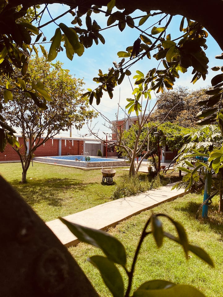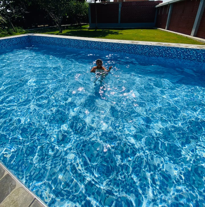 🏊♂️ La piscina está incluida en el precio (¡sin cobros extra!). Mide 10m x 6m x 1.5m y siempre la entregamos limpia, llena con agua natural recién extraída del pozo, sin químicos ni recirculaciones.
