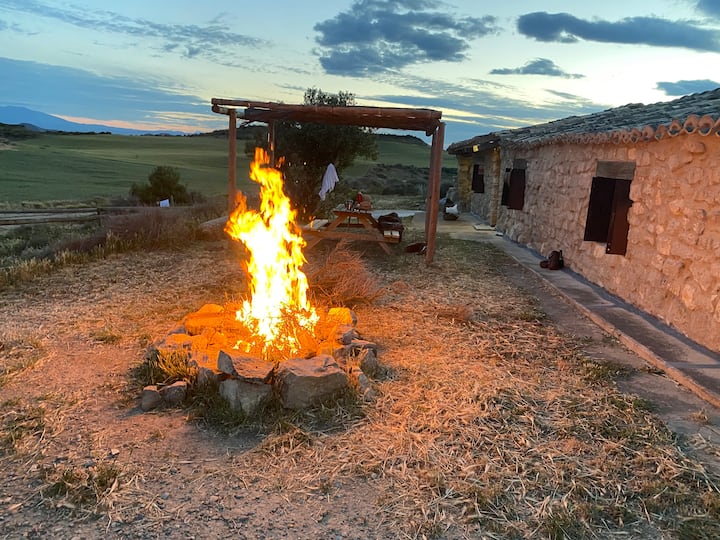 He vivido Arguedas el pueblo que es la Puerta de Bardenas Reales; siempre me ha atraído este territorio, la observación de aves y naturaleza, la reconstrucción de las antiguas cabañas fueron utilizadas por agricultores; sigo cultivando la explotación familiar de cereal.