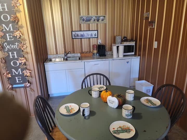 Cabaña en granja junto al lago.