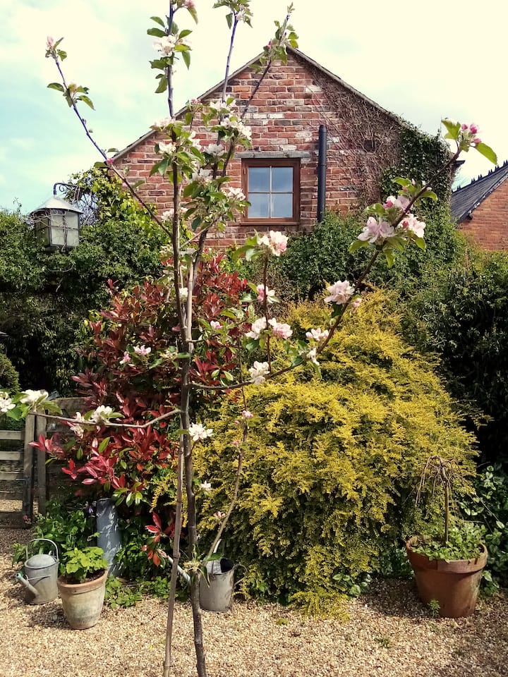 La cabaña da a la parte trasera del jardín de la capilla presbiteriana vecina, que actualmente está al cuidado de los propietarios de The Stableyard. Los huéspedes pueden sentarse y disfrutar del jardín bajo su propio riesgo.
