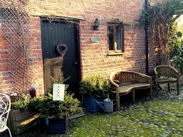 Casa de campo independiente de 4* "Visit Wales" acreditada con vigas de roble originales, ubicada en el patio adoquinado del patio estable de los propietarios, un edificio catalogado de 400 años de antigüedad, el más antiguo del pueblo.