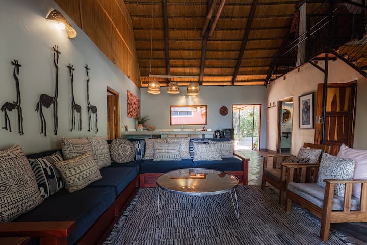 Escápate a la naturaleza. Aquí, disfrutamos de "lo mejor de ambos mundos". Vivimos en un idílico rancho de caballos situado a solo 25 km de las cataratas Victoria, lo suficientemente cerca como para que los huéspedes exploren todo lo que nuestro hermoso destino tiene para ofrecer, pero lo suficientemente lejos como para ofrecer un santuario para los amantes de la naturaleza y aquellos que buscan un lugar tranquilo para relajarse y reconectarse: observar el río, montar a caballo, practicar yoga o simplemente disfrutar de nuestra magnífica avifauna y cálida hospitalidad zambiana bajo el sol.