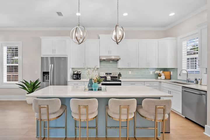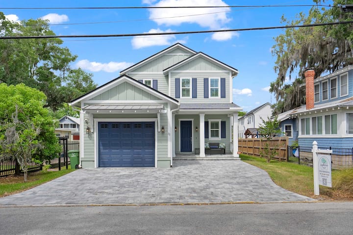 EL FLACO: esta casa elevada de lujo costero de 3 dormitorios se sitúa en el corazón de Lincolnville, una maravillosa extensión del centro histórico de St. Augustine. La casa en sí está a pocos minutos a pie de las grandes atracciones históricas, restaurantes y bares. No tendrás más remedio que permitirte escapar completamente al modo de vacaciones. Diviértete y hospeda a tu grupo con facilidad con nuestro plano de planta abierto y nuestra cocina totalmente abastecida. ¡Relájate al aire libre con una taza de café en el patio delantero o trasero a la sombra mientras observas el bullicio del vecindario residencial favorito del centro de St. Augustine! Relájate dentro o fuera, coge un poco de equipo y sal a pasar un día en la ciudad o asa en nuestra barbacoa eléctrica y enciende la fogata para una noche acogedora.