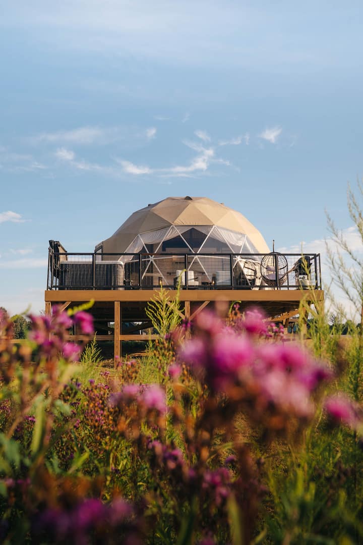 Domo geodésico frente al lago l Refugio con vistas a las estrellas