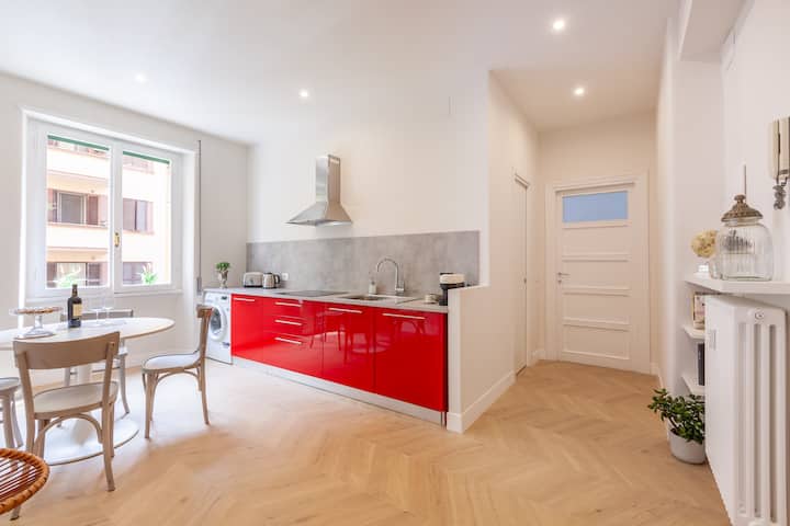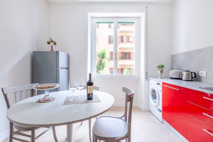 Crecimos en Roma en este animado barrio en este apartamento exacto que heredamos de nuestros abuelos y recientemente renovado.