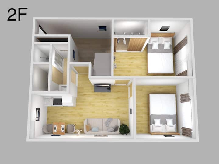 - 2 habitaciones