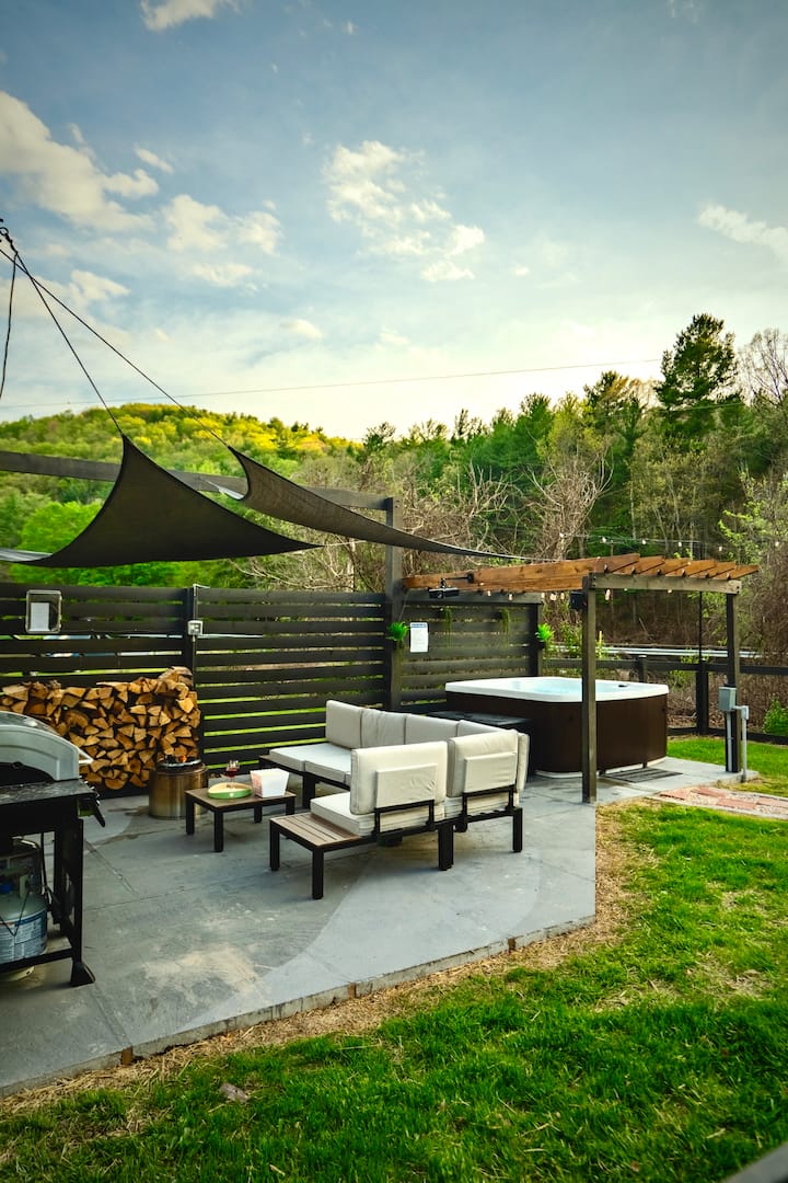 Bienvenido a nuestro Trio Luxe MountainSide Oasis de tres lujosas cabañas ubicadas a dos minutos a pie una de la otra, lo que las convierte en el alquiler vacacional ideal para familias numerosas y reuniones de amigos. ¡Estas cabañas son las casas de vacaciones más cercanas a la entrada de Thornton Gap al Parque Nacional Shenandoah! Cada casa de campo está meticulosamente diseñada para ofrecer comodidad moderna y servicios de primer nivel, lo que garantiza una experiencia vacacional inolvidable para familias y grupos grandes por igual.