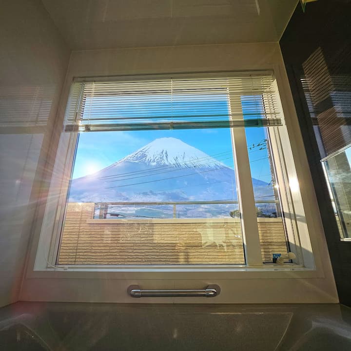 Puedes ver el monte Fuji desde el baño, y puedes disfrutar de un momento de lujo en el dormitorio mientras contemplas el magnífico monte Fuji con el sol de la mañana.