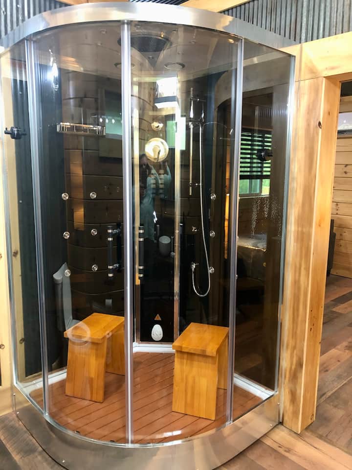 Ambiente relajante con ducha de hidromasaje