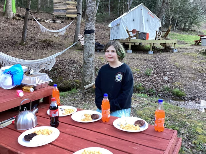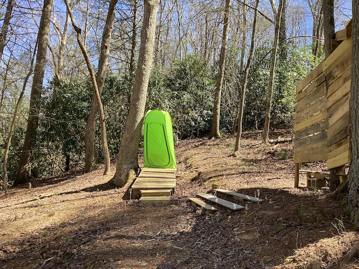 Estás entrando en una experiencia de acampada fuera de la red en Winedrops Creekside Camping. Este refugio rústico no ofrece agua corriente tradicional ni fontanería. Los huéspedes pueden recoger agua del arroyo cercano y usar la ducha solar proporcionada para enjuagues rápidos, acompañada de un baño para ir al baño para mayor comodidad. Disfruta de la simplicidad de la naturaleza y disfruta de una aventura inolvidable para acampar.