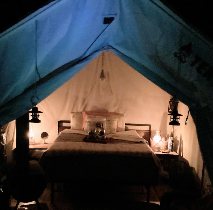 ¡Escápate a un refugio boscoso con esta encantadora y única experiencia de glamping! Ubicado entre los árboles, nuestro acogedor alojamiento ofrece una escapada serena del ajetreo de la vida cotidiana. Rodeado de bosques susurrantes y la belleza de la naturaleza, encontrarás tranquilidad, así como la comodidad de los servicios. Disfruta de una conexión con el exterior con la tienda de campaña que se combina perfectamente con su entorno natural. Este es el lugar perfecto para los aventureros y aquellos que buscan desconectar y recargar energías