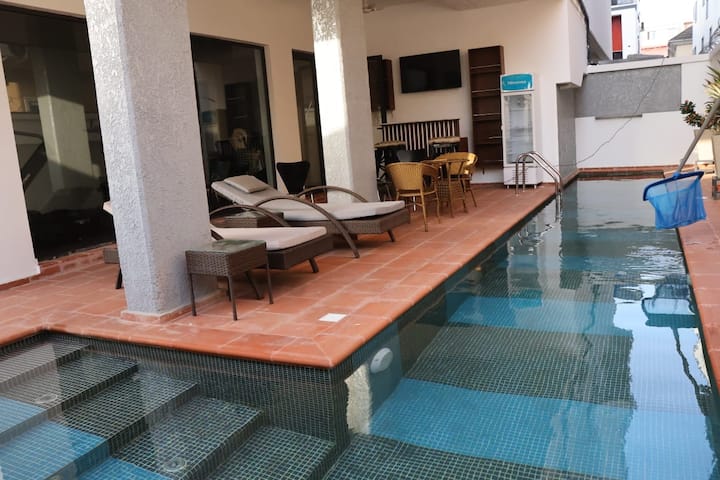 Este es uno de los pocos lugares en la zona con piscina.