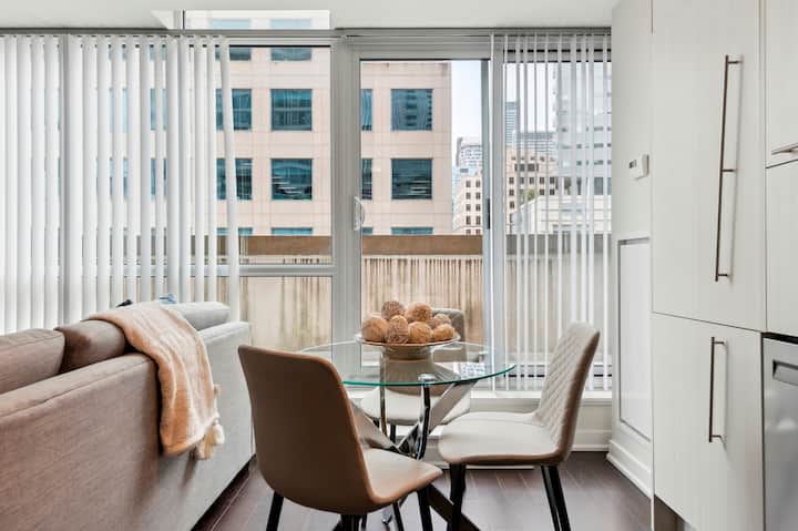 Ubicado a sólo unos pasos de las estaciones de metro de St. Andrew y Osgoode, cualquier parte del centro de Toronto es accesible en minutos. Para los meses más fríos, la entrada de un CAMINO está a solo 2 minutos a pie. En esta propiedad, ofrecemos varios espacios, cada uno meticulosamente diseñado para proporcionarte una experiencia de alojamiento impresionante. Aunque nuestro estilo sigue siendo uniforme en todas partes, el paisaje, la disposición y el diseño de cada espacio pueden diferir.