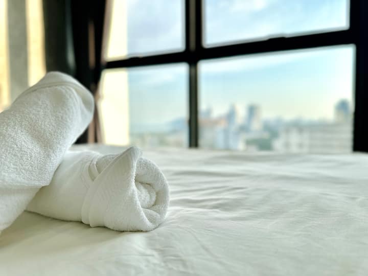 Acogedor alojamiento con vistas al mar y a la ciudad en Penang, 3 dormitorios, 10 personas