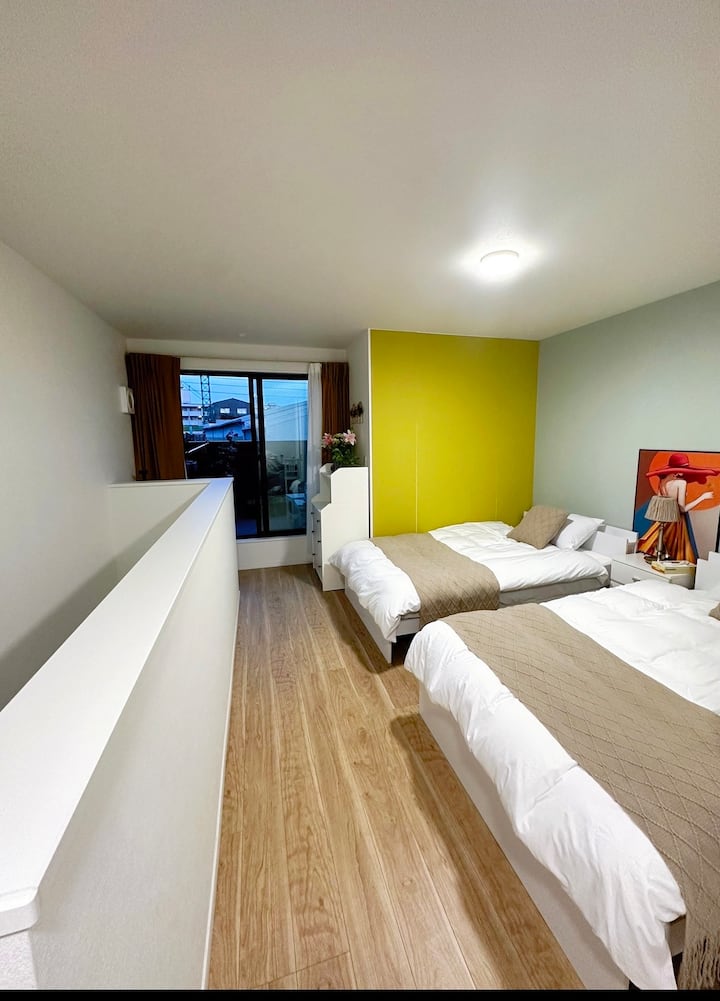 128 metros cuadrados/dos baños/tres dormitorios/sala de estar independiente/calle comercial de Namba/línea JR 6 minutos a Tennoji/24 minutos a Universal Studios
