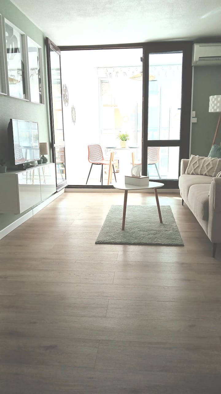 estudio con aire acondicionado/wifi, a 200 metros de la playa del Môle