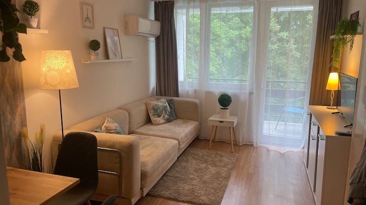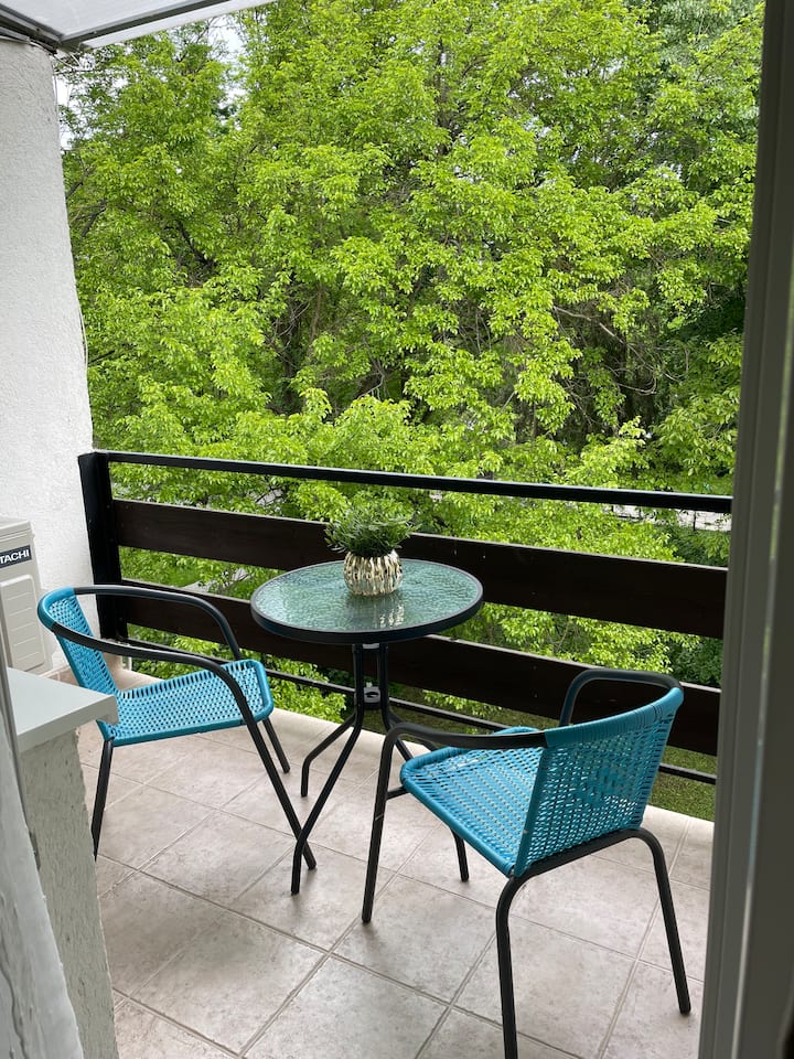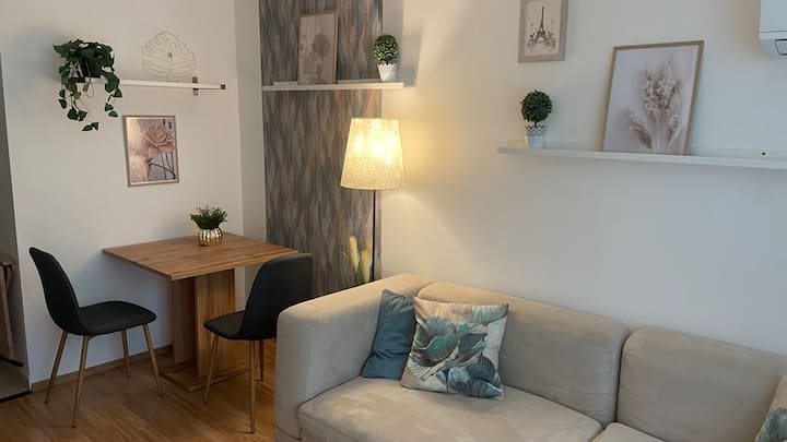El alojamiento es un apartamento de 21 metros cuadrados, tercer piso, meticulosamente y bien amueblado con una sala de estar, comedor, cocina, baño y un acogedor balcón cubierto. Se proporciona TV vía satélite, aire acondicionado y WIFI para los huéspedes. La relajación está asegurada por un cómodo sofá cama. El inodoro, la ducha, el lavabo y el secador de pelo están disponibles en el baño. La cocina está equipada con nevera, microondas, cafetera, calderas de agua y utensilios de cocina. El balcón tiene vistas increíbles de la orilla del Danubio, el paseo marítimo del Danubio. La puerta principal también se puede abrir con un sistema de código numérico, por lo que también hay acceso sin la llave. El alojamiento cuenta con un estacionamiento cerrado gratuito.