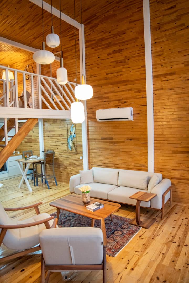 Villa de madera independiente con piscina privada