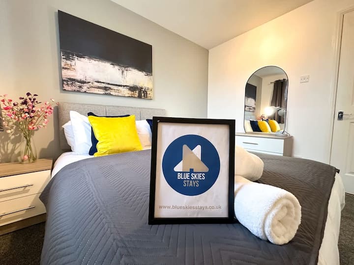 Blue Skies Stays: somos un proveedor de alojamiento de servicio completo para estancias cortas que ofrece propiedades bellamente amuebladas y bien ubicadas en todo el noreste tanto para trabajar como para divertirse. ¿En qué podemos ayudarte?