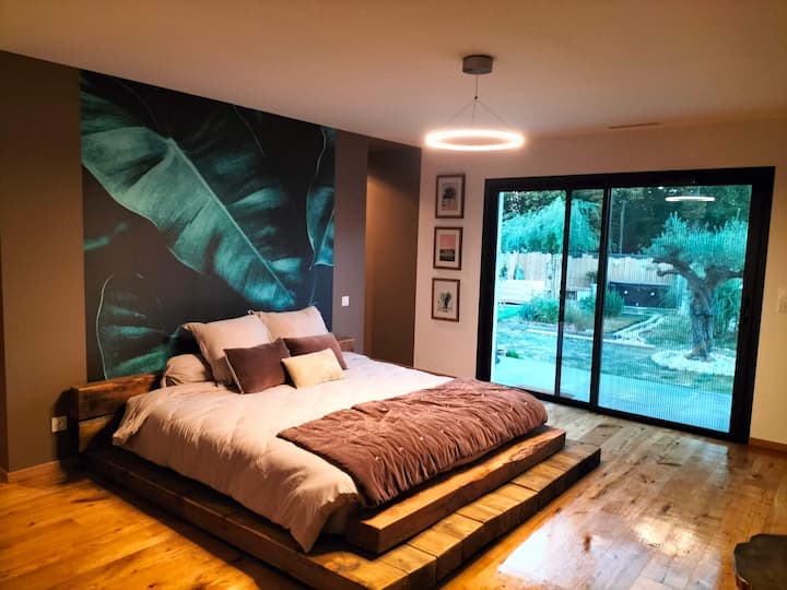 Estudio en tierra con jacuzzi de 50 m y piscina
