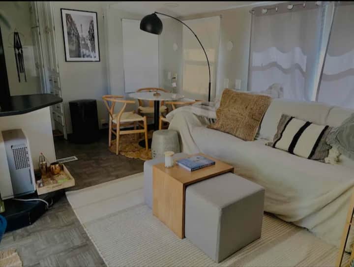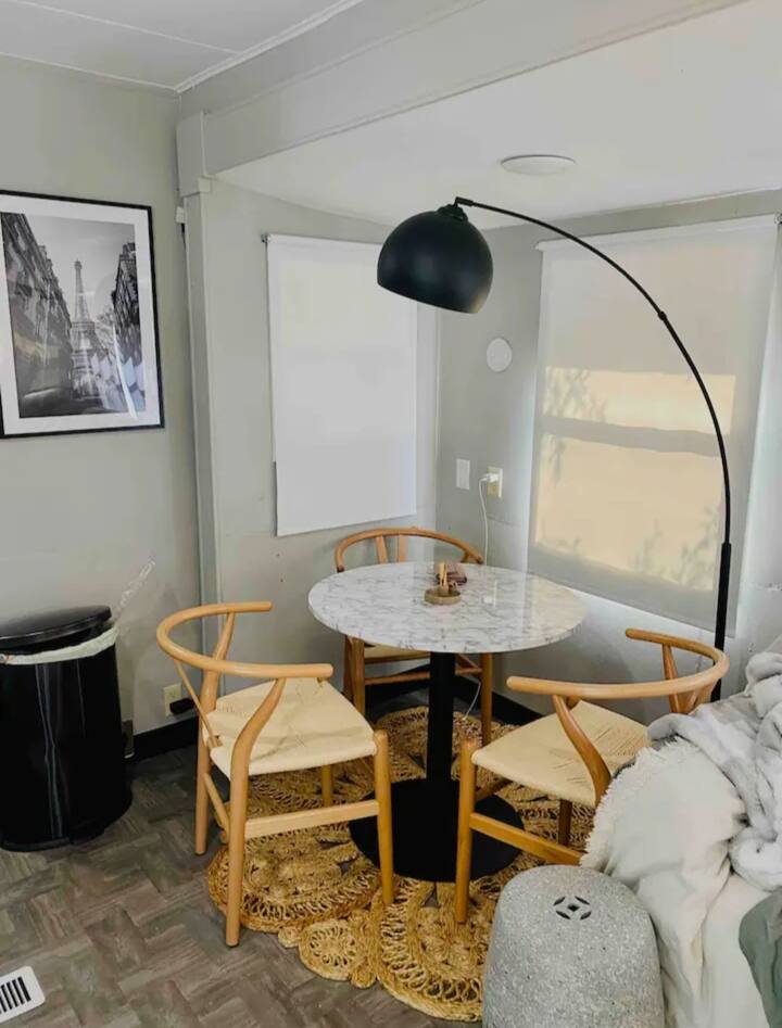 Estamos de viaje. He viajado por Estados Unidos en nuestra autocaravana, me encanta el camino. Nos encanta la experiencia de acampada/al aire libre, frente a los hoteles de 5 estrellas. Nuestro alojamiento es solo eso, no es una experiencia hotelera de 5 estrellas. Es una experiencia de acampada, la aventura te espera, con ducha caliente, camas cómodas, nevera, sofá, TV, internet...