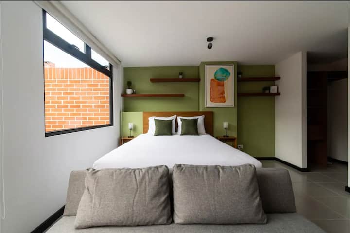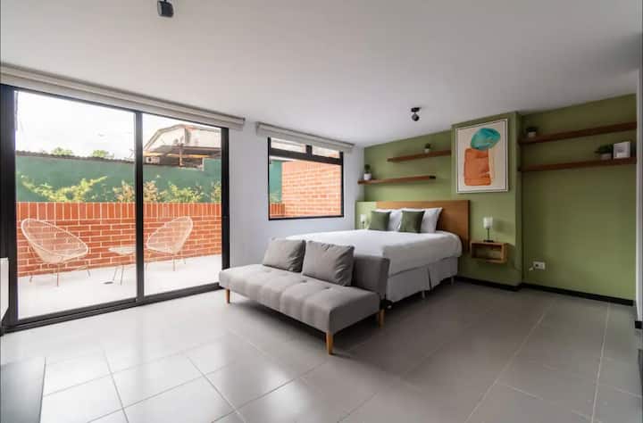 Estudio con bonito balcón al aire libre/ zona 14