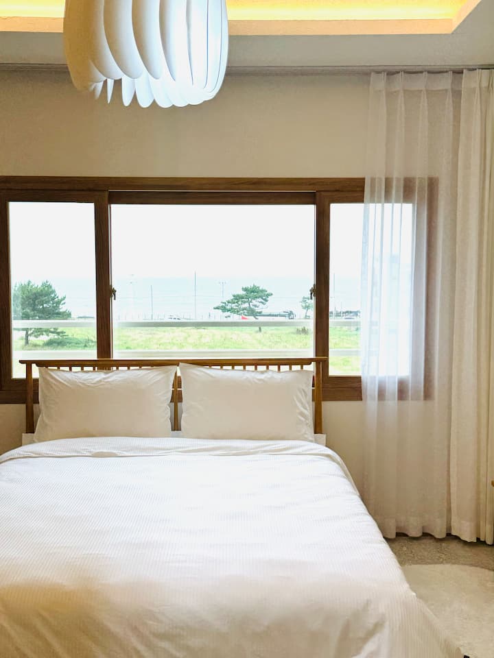 A 5 minutos del aeropuerto, con vista al mar, cerca del mercado de Dongmun para 2 personas, cerca de la playa de Iho Tewoo, pensión con buena relación calidad-precio, estacionamiento gratuito, bicicleta de carretera