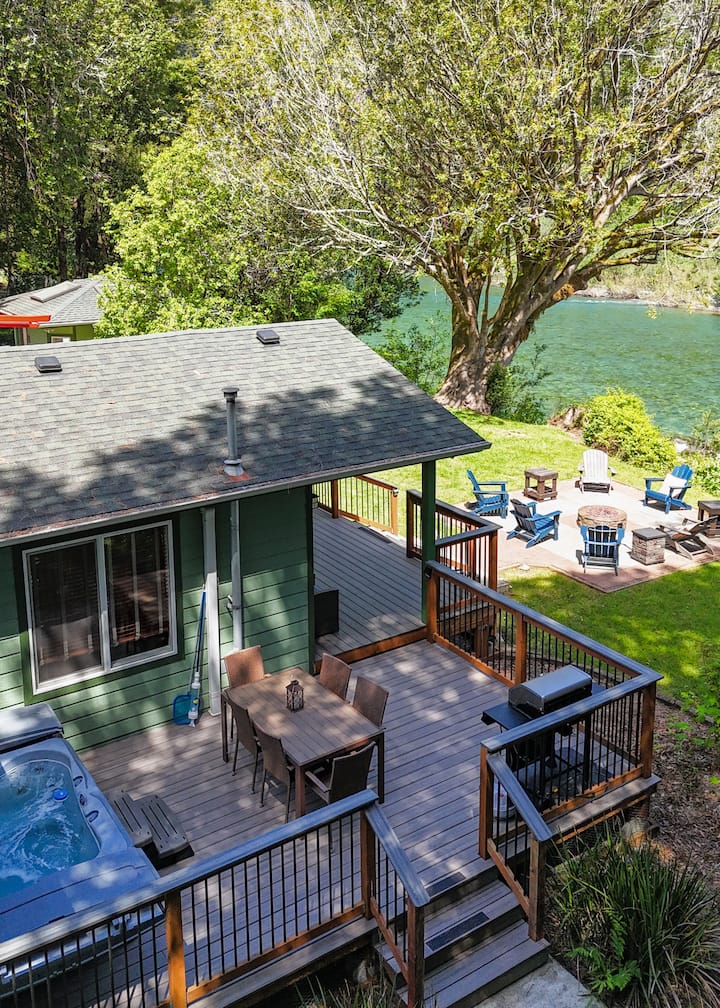 Emerald River Retreat: frente al río, spa y fogata