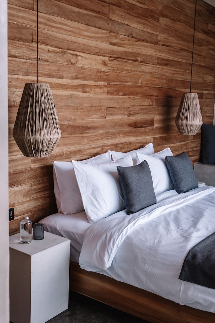 La estética se inspira en el entorno natural, que incluye madera de origen local, tonos terrosos y exteriores negros que se asemejan a los campos de lava negra del monte Batur. Nuestras cabañas proporcionan un escondite cómodo y acogedor que se mezcla armoniosamente con su entorno fascinante.