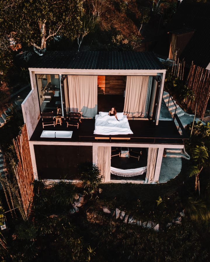 Los niños menores de 12 años NO pueden alojarse en Batur Cabins. Nuestras cabañas están meticulosamente diseñadas para ofrecer a los huéspedes una experiencia inolvidable. Ubicadas en la ladera de una montaña, las cabañas están elevadas en columnas para ofrecer las mejores vistas posibles. Como resultado, la mayoría de nuestras cabañas e instalaciones están a varios metros sobre el suelo, lo que las hace inadecuadas para niños pequeños.