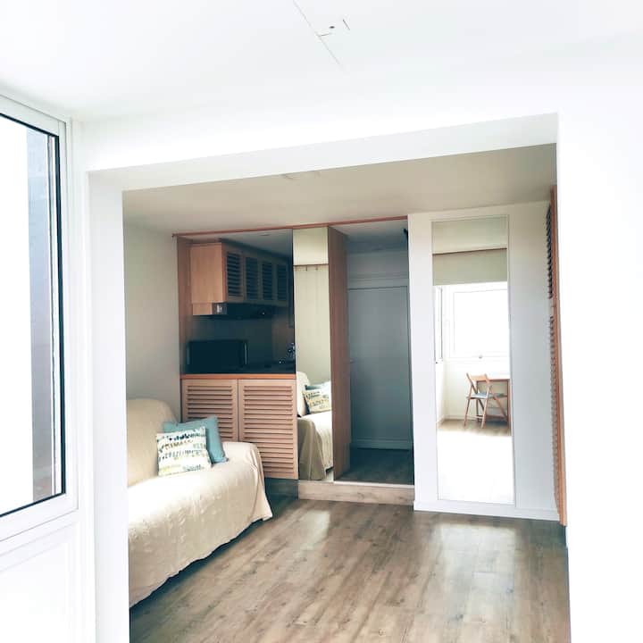 Con vista a la playa y a la montaña