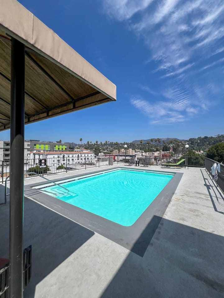 2 dormitorios con vistas al cartel de Hollywood, lavadora y secadora y aparcamiento