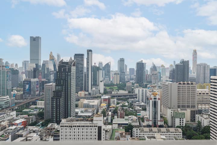 Sal del apartamento y ya estás en Sukhumvit Soi 11, donde están todos los buenos restaurantes y bocadillos. «Sukhumvit 11 Thai Street Food» es una buena opción para la comida tailandesa. Otros como «Hemingway's», «Oscar Bistro», «Soho Pizza» y «Tony's Sukhumvit 11» también son buenos lugares para picar algo. También puedes caminar 4 minutos para llegar a Sukhumvit Soi 5, donde encontrarás comida de Oriente Medio e india. «Foodland» siempre es una buena opción para pasar por una tienda de comestibles y tomar un brunch rápido antes de comenzar el día. Si vas más allá de Soi 13, puedes encontrar muchos bares deportivos, como el Old German Beer House, o un poco más lejos de Asok, llegarás al centro comercial Terminal 21 y podrás subir hasta el quinto piso para disfrutar de una gran zona de comida tailandesa.