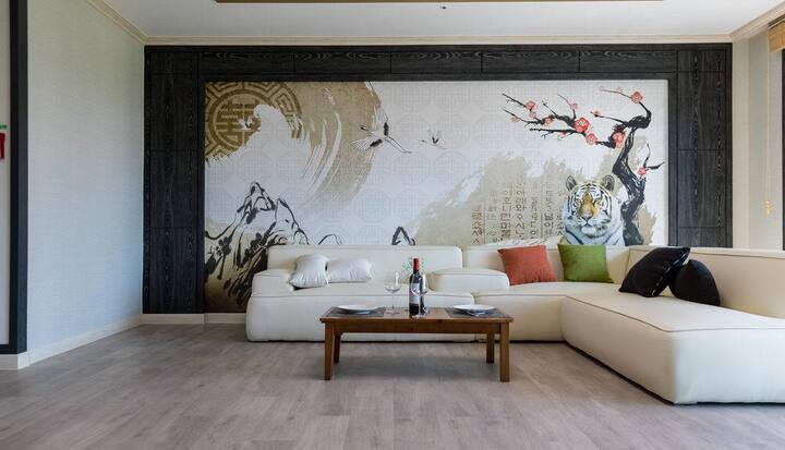 Separado, 1 sala de estar + 1 habitación con suelo radiante (5 juegos de ropa de cama) + 1 habitación con suelo radiante (5 juegos de ropa de cama) + 1 cocina + 2 baños