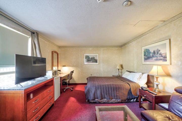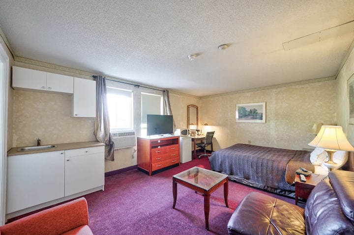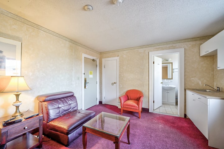 Bienvenido a Royal Inn & Suites, tu escapada perfecta en el corazón de Guelph. Nuestro hotel ofrece una variedad de alojamientos cómodos diseñados para satisfacer las necesidades de todos los viajeros. Elige entre nuestras opciones de habitación bien equipadas: la acogedora habitación de 1 cama tamaño queen, la espaciosa habitación grande de 1 cama tamaño queen, la versátil habitación de 2 camas tamaño queen y la lujosa habitación de 1 cama tamaño king. Cada habitación cuenta con sábanas cómodas, lo que garantiza una noche de sueño reparador.