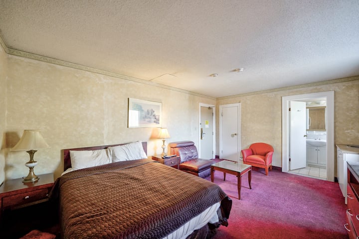 Royal Inn & Suites está convenientemente ubicado a pocos pasos de la parada de autobús más cercana, por lo que es fácil explorar la ciudad y más allá. Para aquellos que viajan en auto, ofrecemos fácil acceso a las principales autopistas.