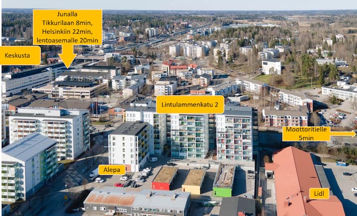 22min tren Hki, 20min aeropuerto, plaza de aparcamiento