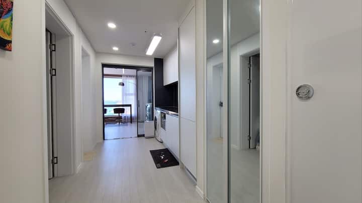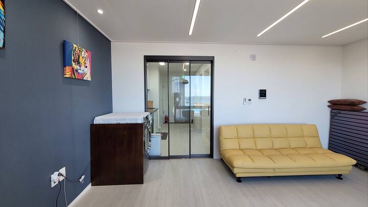Una habitación para cuatro personas con una increíble vista al mar, donde se filmó el duende y la chaqueta de BTS
