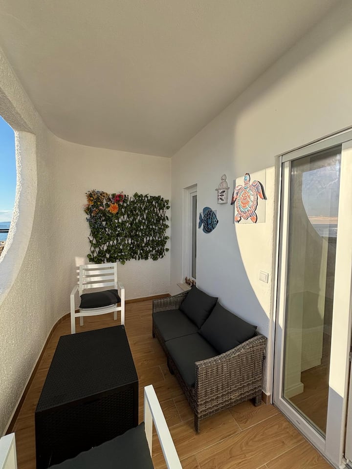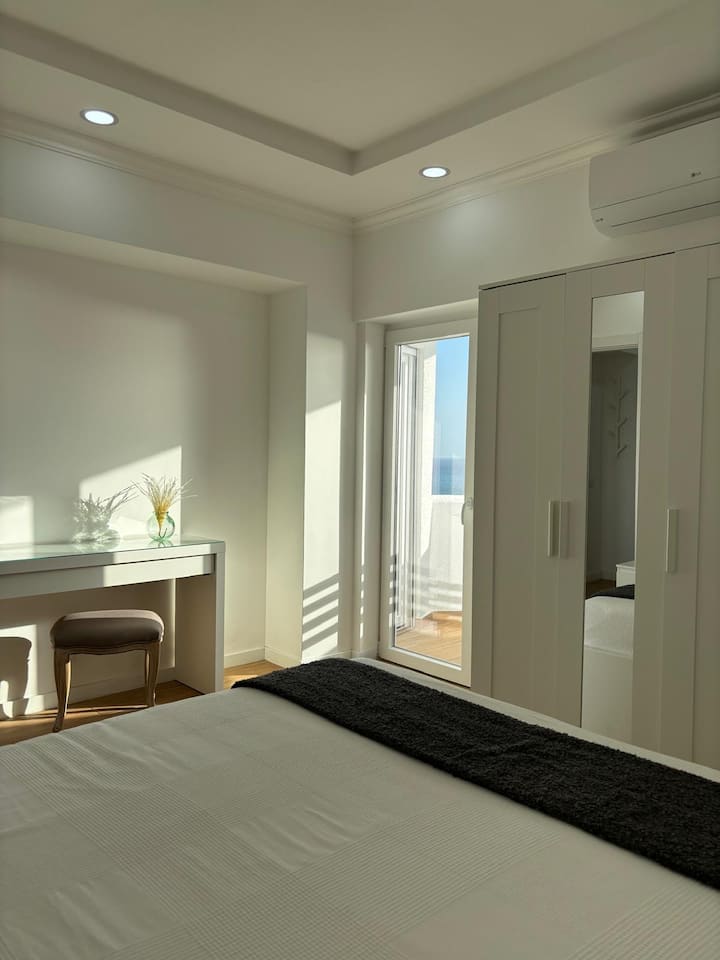 Moderno y soleado, vacaciones con vistas al mar