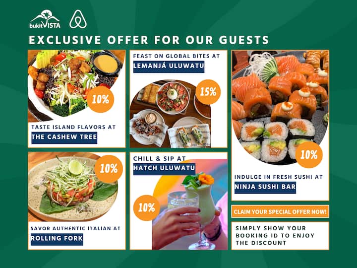 Los descuentos no se pueden combinar. ¡Solo tienes que mostrar tu identificación de reserva y saborear los sabores de Bali!