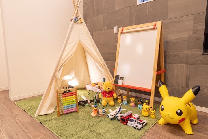 Totalmente equipado con un espacio para niños con juguetes para que los niños disfruten