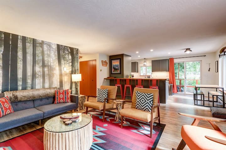 Hiker's Retreat es una cómoda cabaña de dos dormitorios y dos baños totalmente renovada con comodidad en mente que te permite relajarte después de tus aventuras. Con muebles y camas completamente nuevos, aire acondicionado, una cocina recientemente renovada, baños renovados y una gran bañera de hidromasaje privada para que te relajes con la máxima comodidad después de un día explorando la península olímpica. Para una comodidad moderna, también hay un cargador para vehículos eléctricos en el lugar. Para un día activo en el lago, los huéspedes de Hiker 's Retreat también obtienen un Guest Park Pass para acceder al lago en todos los parques privados y bellamente mantenidos de Lake Cushman, con playas para nadar, lanzamientos de barcos, parques infantiles, pozos de herradura, voleibol y canchas de baloncesto, a todos minutos de la cabaña.