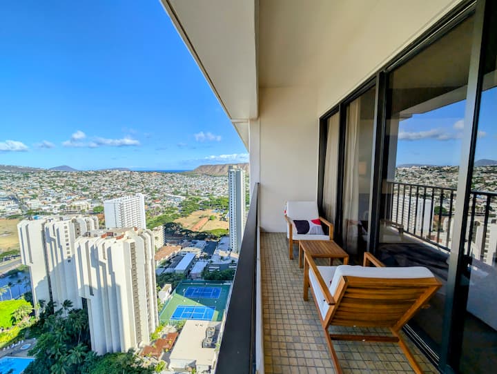Ático en el piso 38, vistas a Diamond Head, aparcamiento gratuito