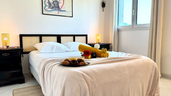 ★ Regálate una escapada mágica en un amplio apartamento totalmente renovado, lleno de luz y diseñado para tu bienestar. Imagina despertarte en una habitación elegante y tranquila, disfrutar de tu café en el balcón con vistas a las colinas de Niza y terminar el día en la comodidad de un acogedor salón. Entre momentos de relax y nuevas experiencias, este espacio se convierte en un auténtico refugio donde cada detalle crea recuerdos inolvidables. ★