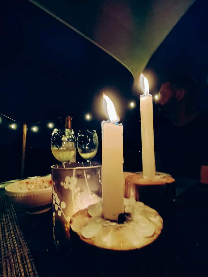 Amamos recibe desde aquí, es algo que nos da un gran placer. En nuestros bungalows, puedes preparar comidas rápidas o pedir dos tipos de servicio de cocina: chef personal, donde nuestro chef se prepara en su cocina y sirve en el bungalow,un menú de 3 pasos, diseñado y diseñado, exclusivamente para ti. Todavía puedes pedir platos separados de nuestro menú (ambos deben reservarse hasta 24 horas antes de la llegada).
