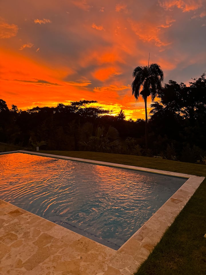 Villa tropical con piscina espaciosa y vegetación cerca de Sosúa
